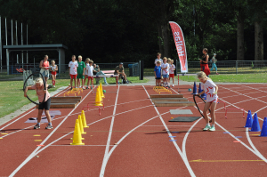 Naast de jeugdactiviteiten konden ook de oudere deelnemers hun energie kwijt met een bijzondere uitdaging: run-archery. Deze sport combineert hardlopen met boogschieten en vraagt zowel uithoudingsvermogen als concentratie. Eerst het parcours afleggen, daarna de adem tot rust brengen en met vaste hand de pijlen op het doel richten – het zorgde voor een dynamische en spannende ervaring. De clinic werd mede verzorgd door buur-vereniging Artemis, met begeleiding van Theun en de hulp van David. Dankzij hun enthousiasme en duidelijke uitleg konden deelnemers op een laagdrempelige manier kennismaken met deze relatief onbekende, maar snel groeiende sport.