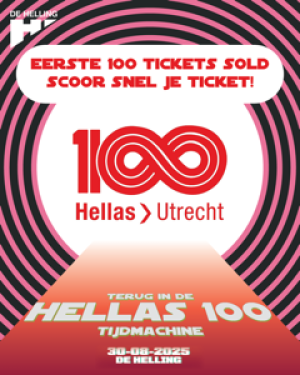 Hellas tikt de 💯 aan – een PR én reden voor een feestje! Dus maak je klaar voor de start, trek je snelste hardloopschoenen en je mooiste glitteroutfit uit de kast en spring met ons de tijdmachine in. Op zaterdag 30 augustus flitsen we terug naar 1925 − het jaar dat Hellas werd geboren − en vieren een eeuw samen zweten op de atletiekbaan.